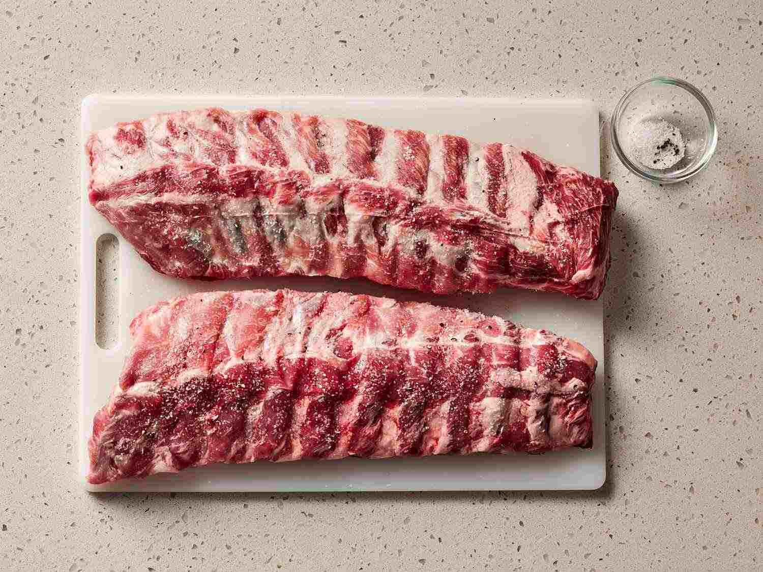Season ribs with salt and pepper. Dotdash Meredith Food Studios