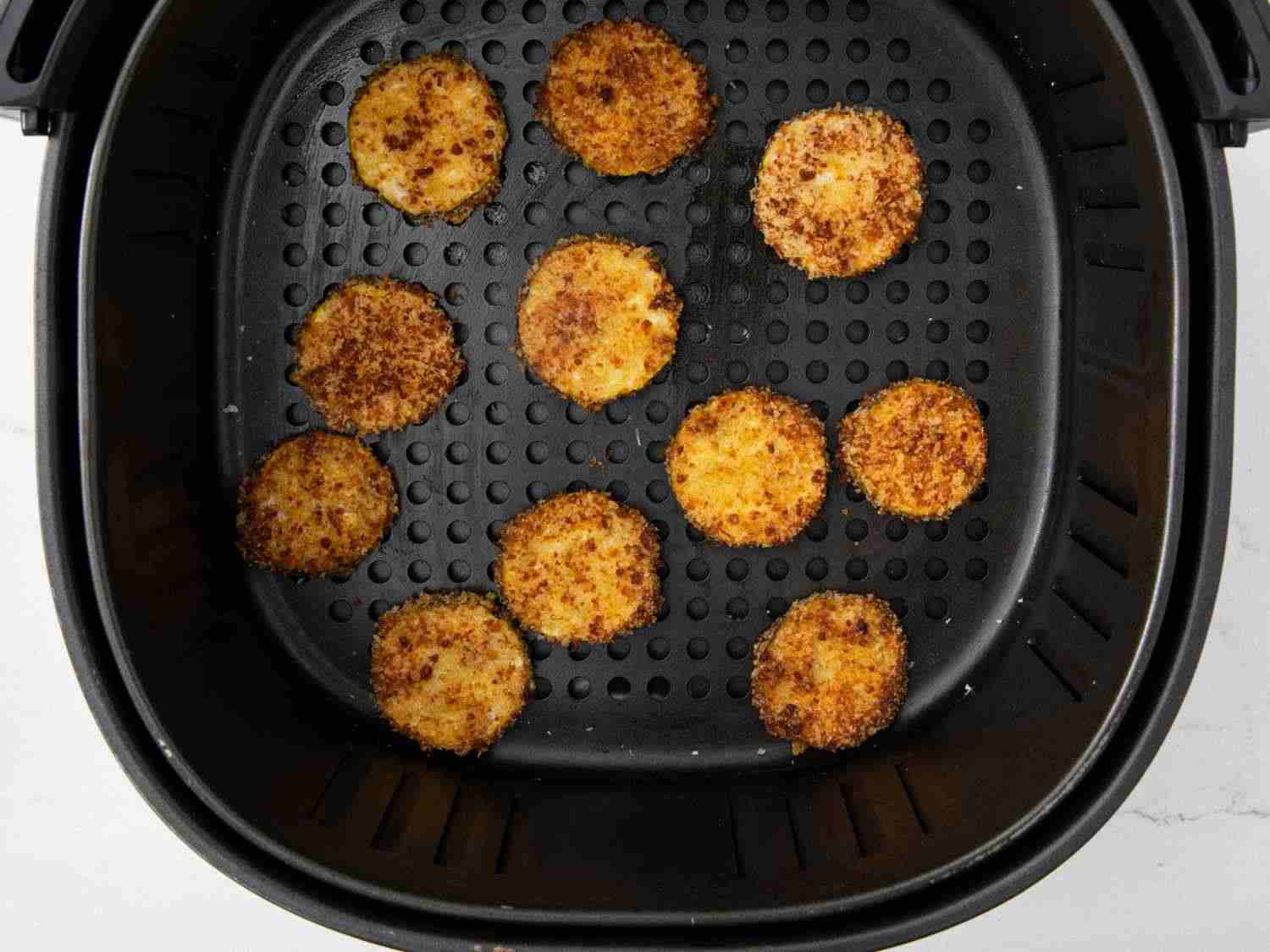 Cook in the preheated air fryer for 10 minutes; flip the slices and cook 2 minutes more. Repeat with remaining zucchini slices. Dotdash Meredith Food Studios